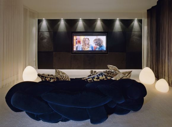 Intimate space suitable for home cinema & big enough for a blue stylish sofa & some cushions / TrendZona