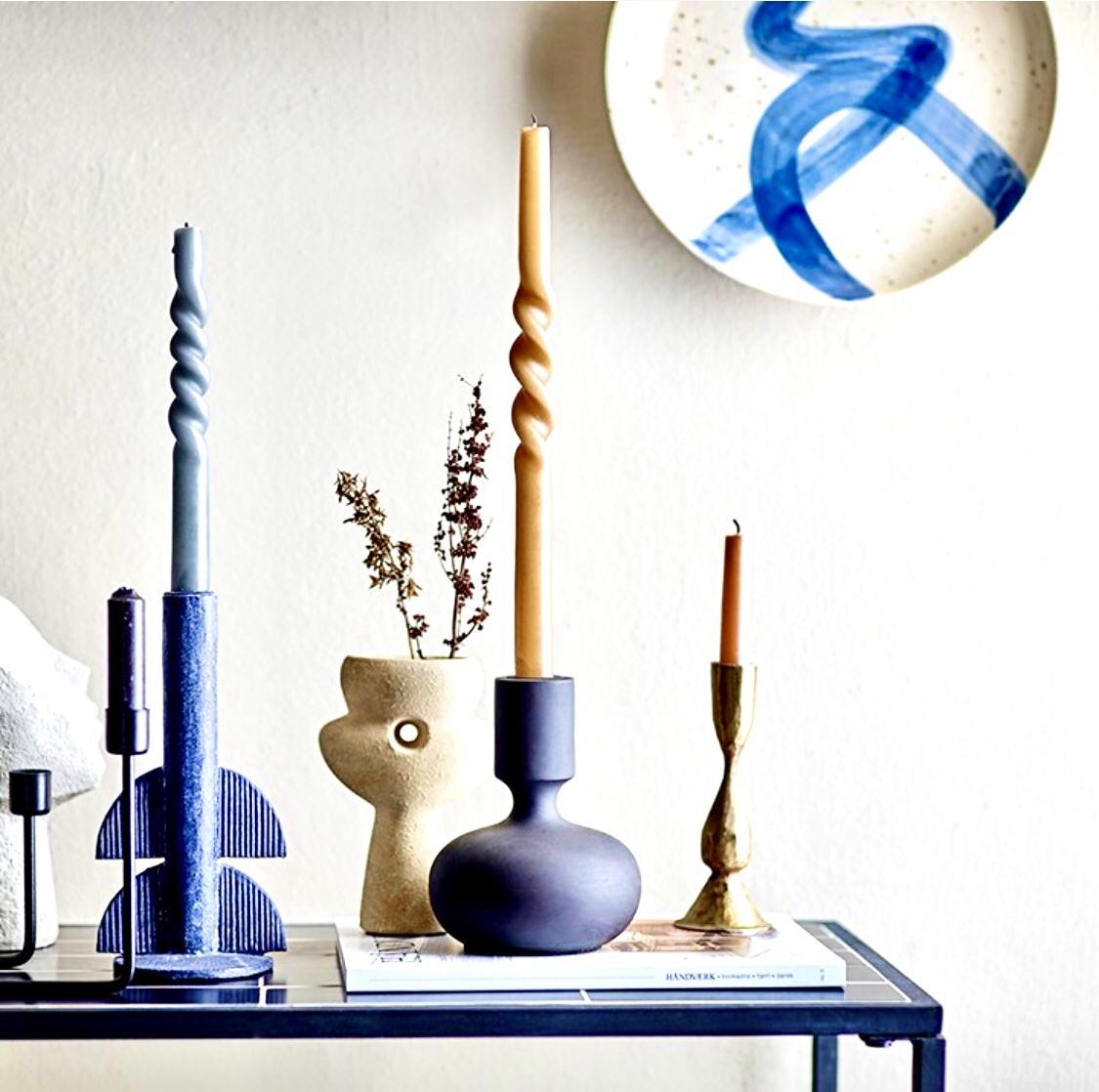 Candlesticks in different heights, design & colours – or same colour scheme – is very appealing & eye catching.