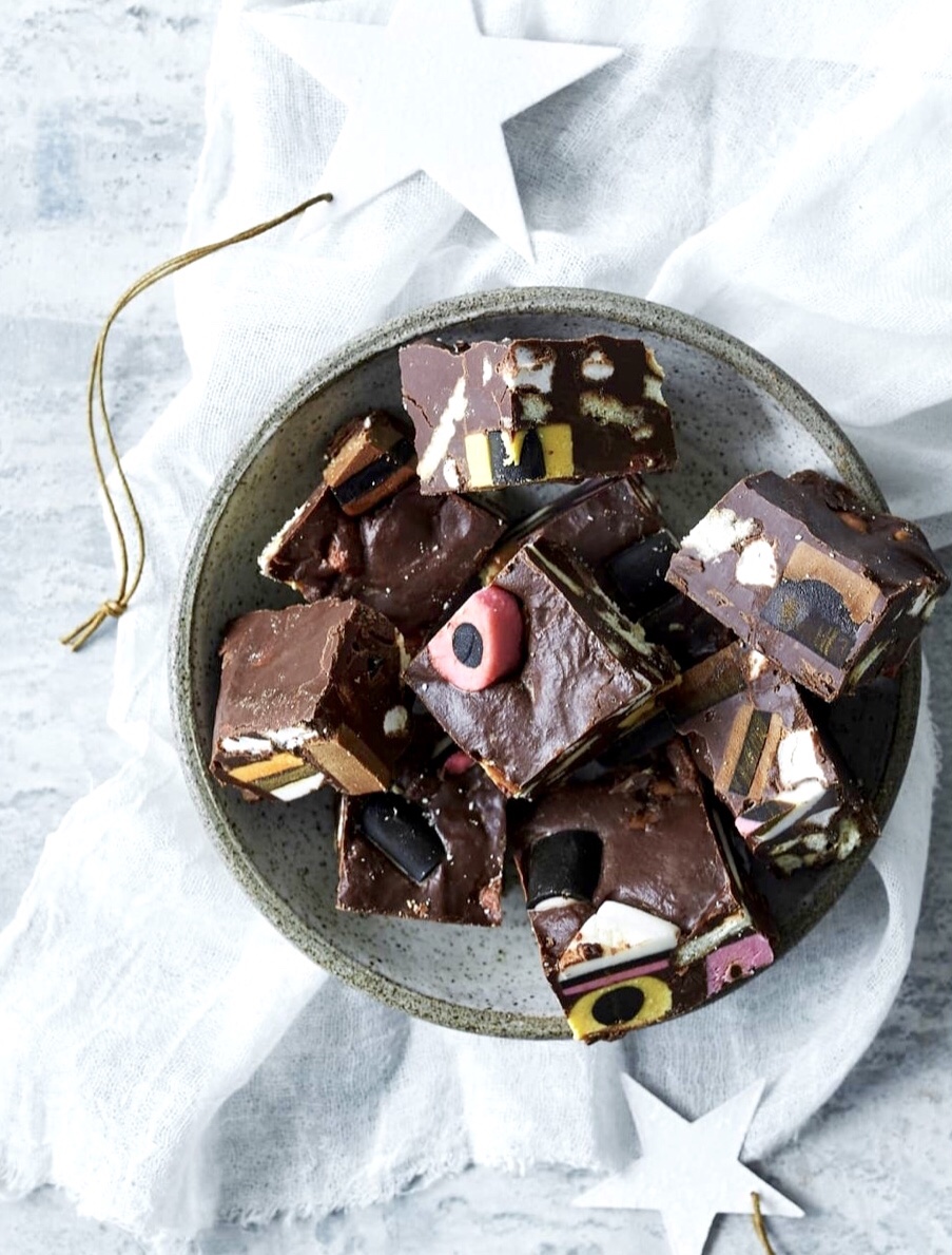 Rocky road with liquorice confectionery – yummy but also beautiful as an ornament, as long as they last 😋