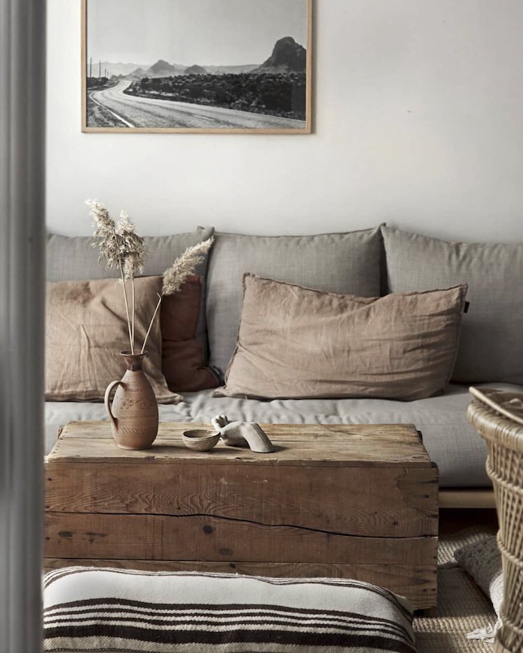 Nice & simple with earthy colors & materials in coarse structures such as wood, rattan & sisal …