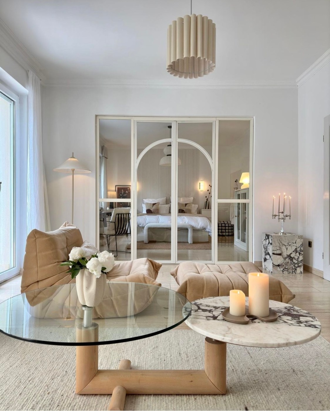 Incredibly appealing apartment with a neutral color scheme & despite the stripped-down impression, a number of details appear that arouse interest.