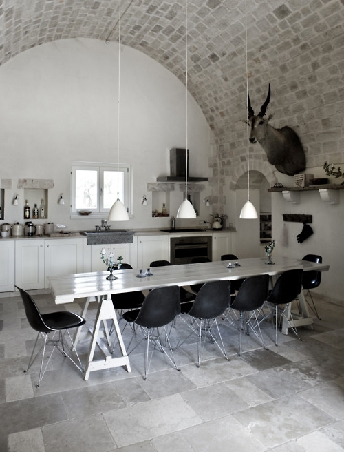 Fabulous with the fresh appearance – high ceiling, arched shape plus white & black furniture / Pinterest