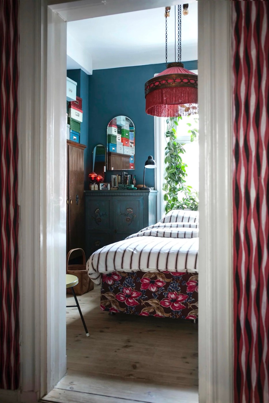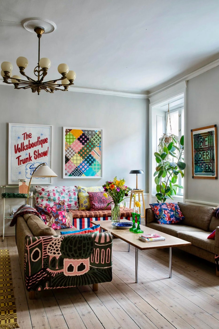 New & old collections mixed with patterns, colors and shapes. Rubbed furniture, walls filled with books & a nice personal mix with something for all senses.