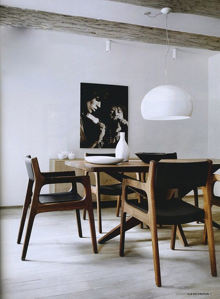 I’m right now very fond of darker wood combined with black. A feeling of the fifties without that specific style. Well, with that style too actually, since it’s very appealing. I’m more after the contemporary style with soul…not styled or just copied right off but well thought out & detailed. Take a look at the first two images below. That’s the feeling I mean. But by all means, different woods combined with black details – it always works.