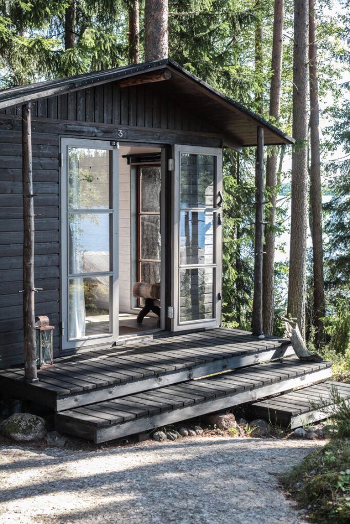 A sauna cabin in the Helsinki archipelago. The building follows the coastline with a terrace area that protects from the strong sea wind. The exterior cladding is made of larch that turns beautifully grey over time & blends perfectly into the cliff, so the buildings do not stand out from the shore when seen from the sea.