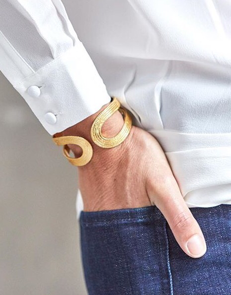 Sometimes one may consider whether to stick with fewer accessories but perhaps larger in size. ie more visible – which stands out to a monochromatic ensemble.
