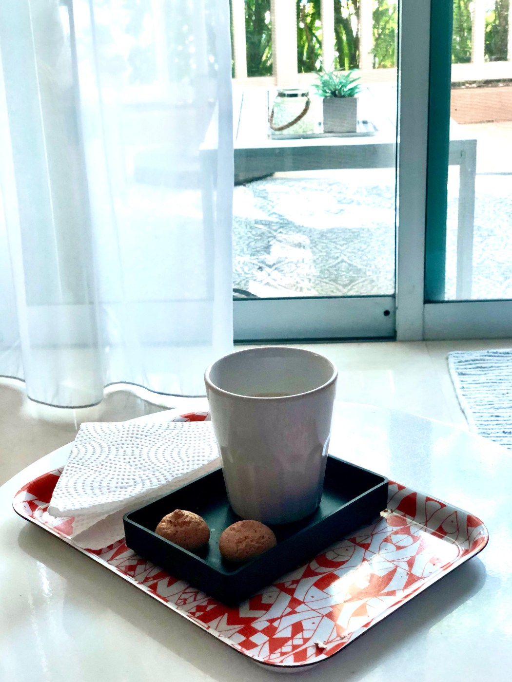 Christmas Eve, early morning, much has already been prepared with Christmas shopping, food, cleaning, decorations – a quiet moment at the back before breakfast, a cup of coffee & then the Christmas festivities starts.