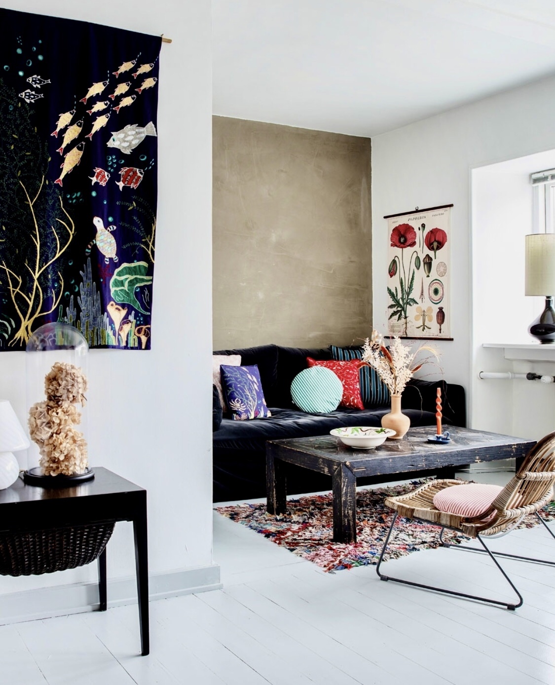 A personal interior style with a lot of black & white plus details that stand out, which makes the whole room captivating. Nice!
