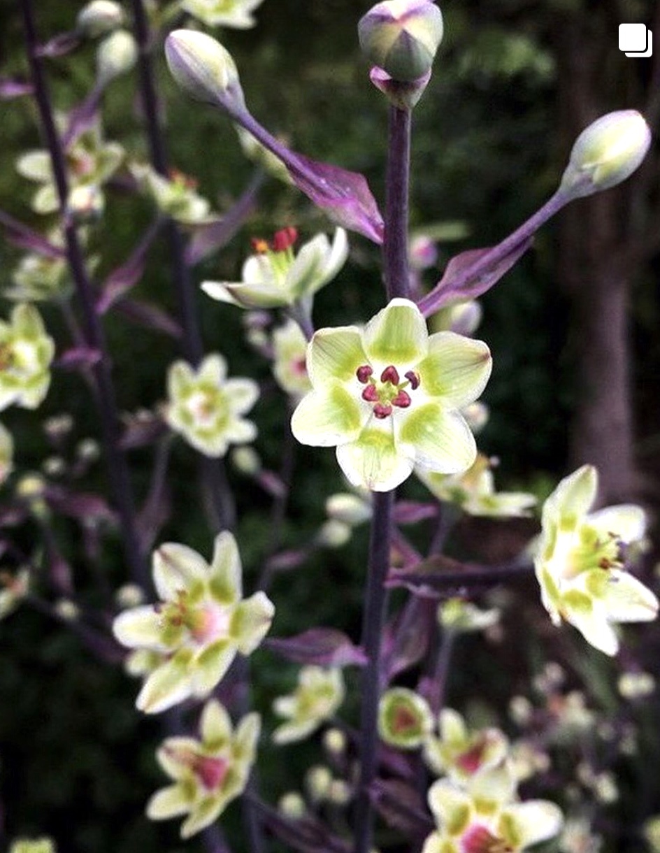 A beautiful rarity – green lily – which gets elegant gray-green leaves, forming grassy tuves. The flower is carried up on high purple branches with Star shaped flowers in green & white.