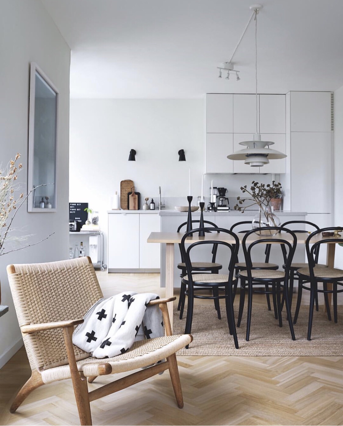 A nice interior with a combination of dark & light – in a white & bright environment.