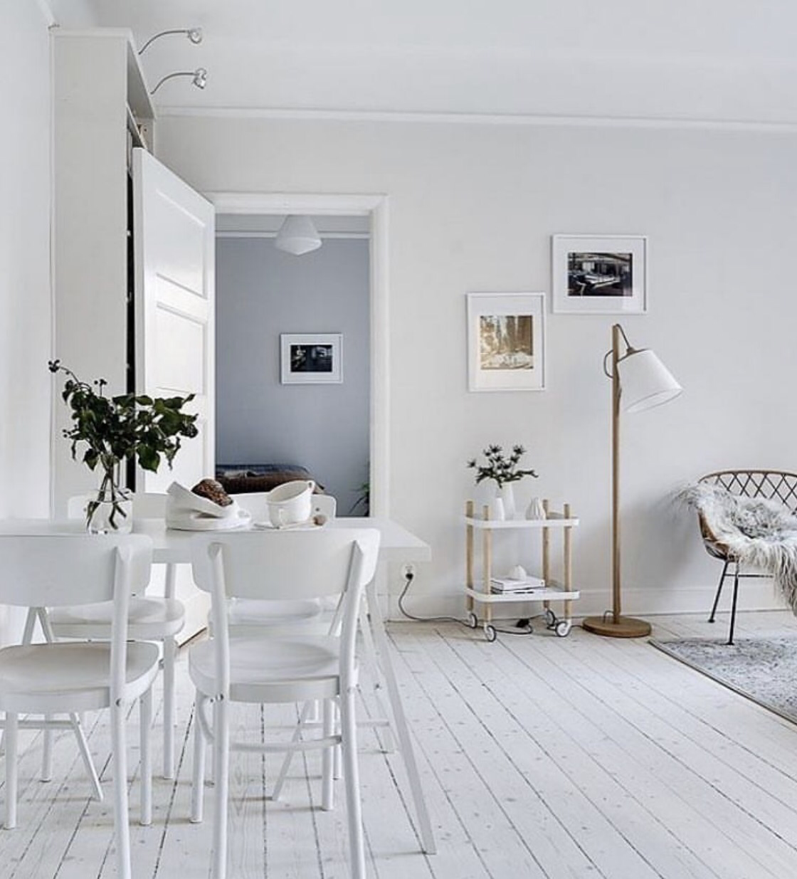 Similar to previous post, a Swedish interior, but different with the all white approach, from the wood floor, to the walls & furniture – adding the light blue colour to the bedroom makes it very “icily” fresh.