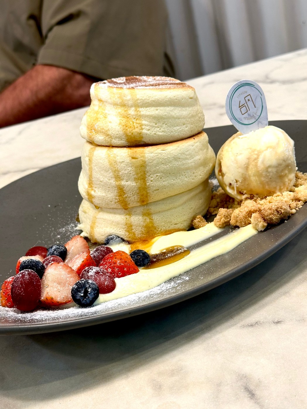 Taiwanese cafe in my neighbourhood – serving exceptional tasty & fluffy pancakes with berries & vanilla ice cream.