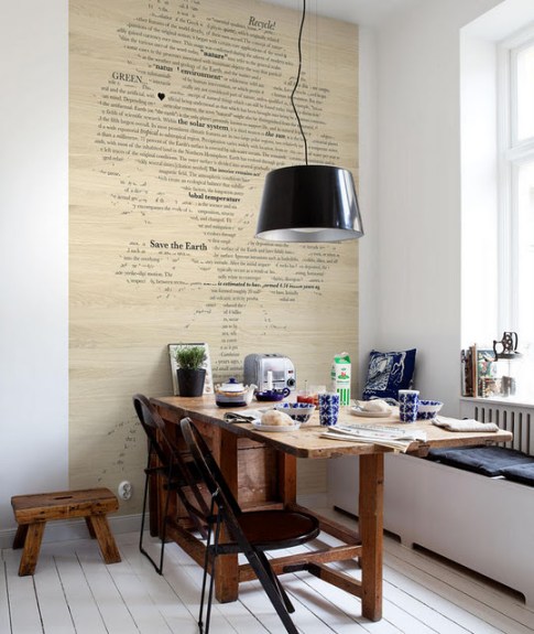 Enlarged photos of family, friends, idols, holiday memories or whatever. On the other hand, there are a great deal of new design on the market, which really evokes possessiveness. Great variety of beautiful motifs, graphic design, landscapes or skyline … it’s your choice! Wall paper is a good way to “dress” the room in pattern or color that provides a personal touch, express your personality & provide cosiness. It’s a great benefit today, that they are easy to put up & even take down to move to another wall … within certain collections & trade marks.