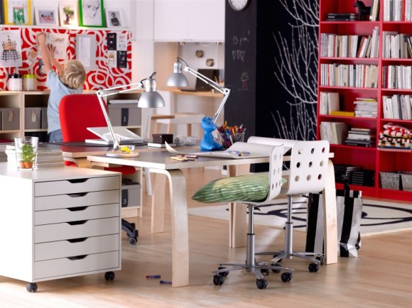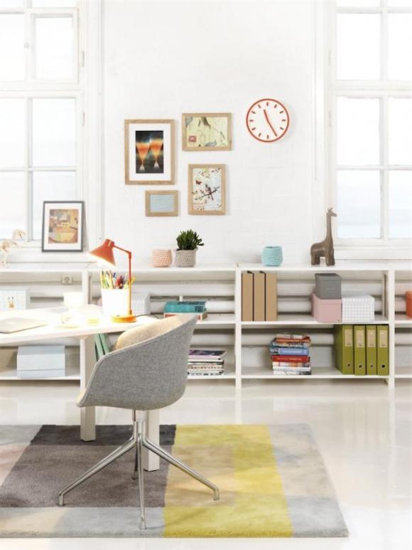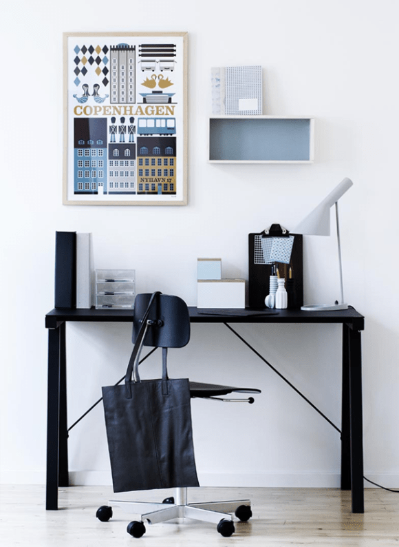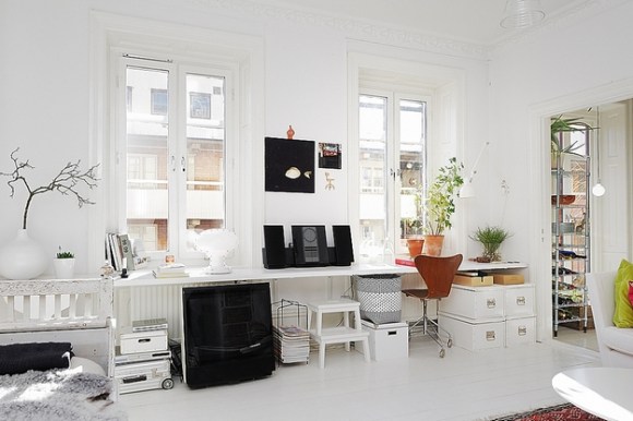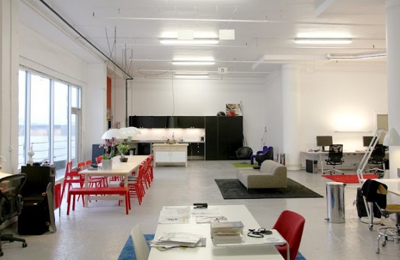 I promised to do something more modern way back when I blogged about workplaces. I was reminded recently so I guess I have to keep my promises. And I don’t mind, there’s so many inspiring work spaces, for sure. I have a particular fondness for long desks for, preferably several in a row. I like it when I can see what I’m doing & things sorted in a manner that gives me an overview. Especially when I can move things along the tables & still have it spacious around & beside.